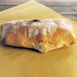 La farina di grano tenero viene impastata con acqua e lievito naturale. L’impasto, dopo essere stato a riposo, viene lavorato nuovamente e poi tagliato a mano. Infine viene cotto nel forno a legna.
